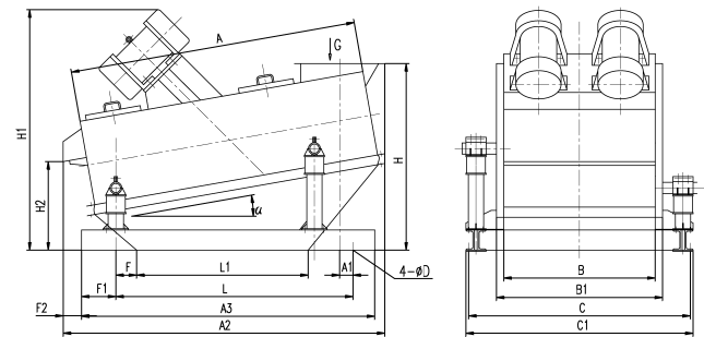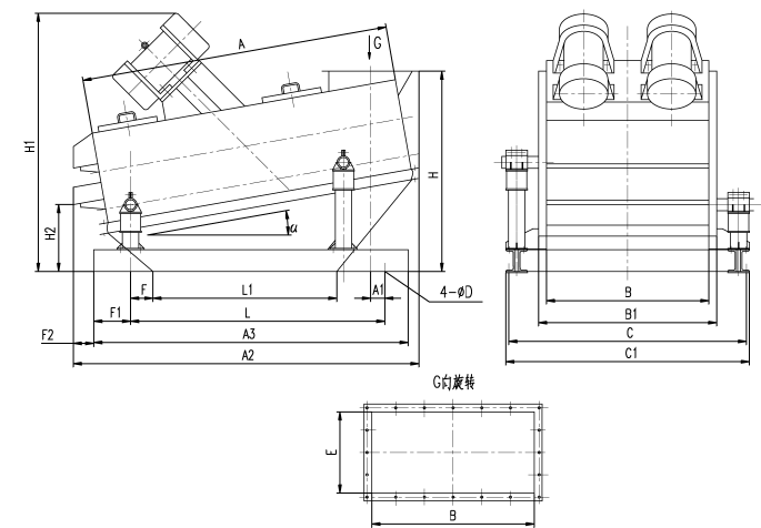 ①注:筛面倾角可根据需要任意设计
