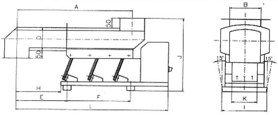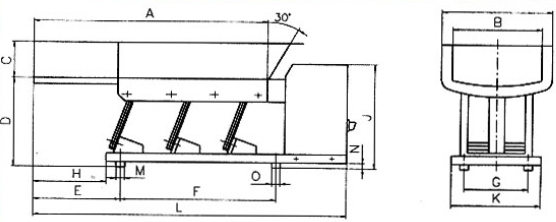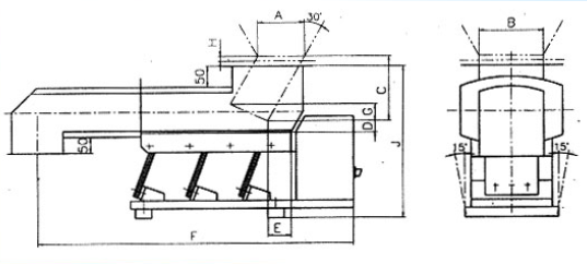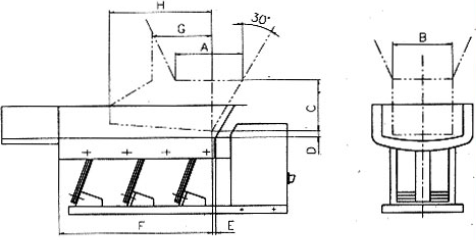 本产品设计时未考虑物料仓压影响,给料机的正常工作,应尽量减少料仓压力的影响,建议设备使用时配置相应的溜嘴,溜嘴的形式及配置尺寸见下图: